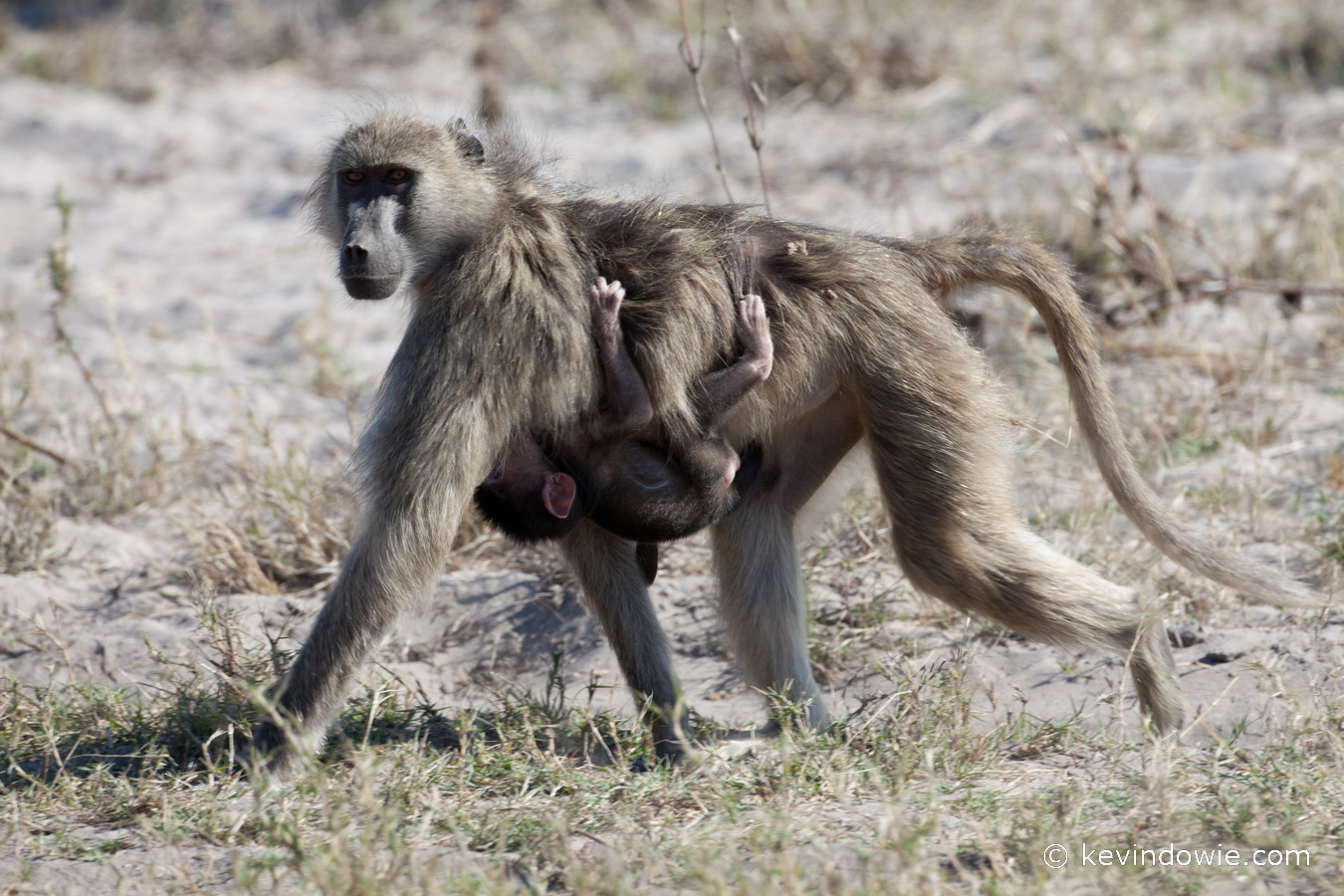 Baboon carrying baby, Okavango Delta