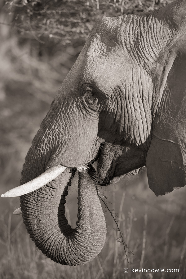 Elephant eating, Okavango Delta, Botswana. (monochrome)
