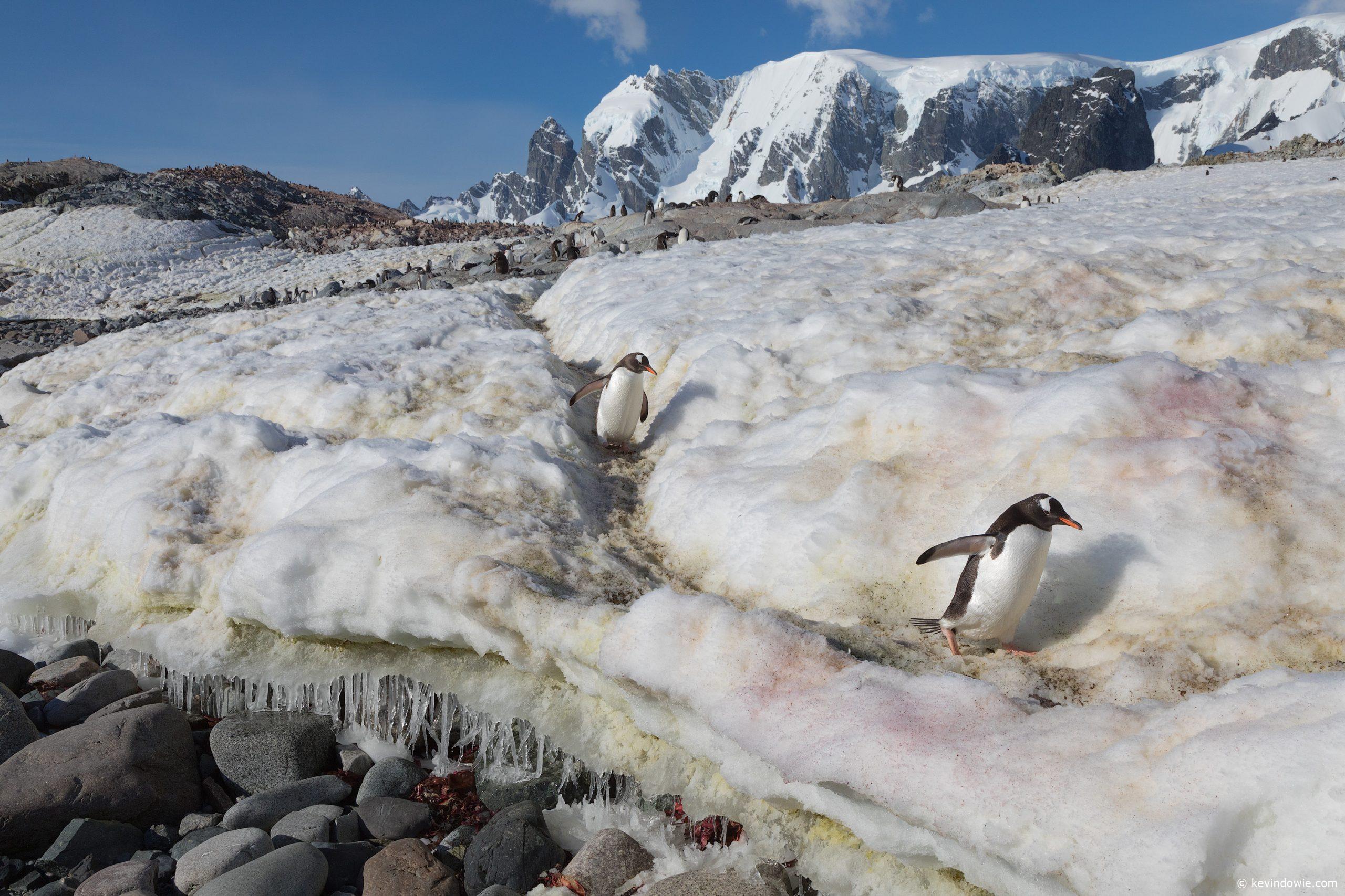 Gentoo penguins on “penguin highway”. Cuverville Island, Antarctica.