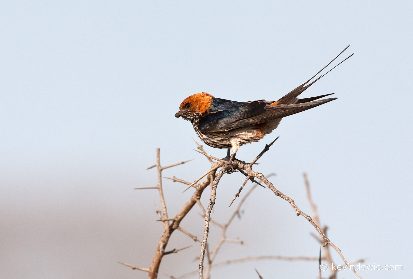 Lesser Striped Swallow on Acacia, Okavango Delta, Botswana.