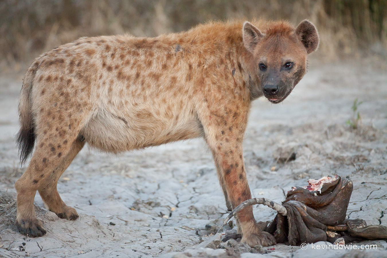 Spotted Hyena with carcass, Okavango Delta, Botswana