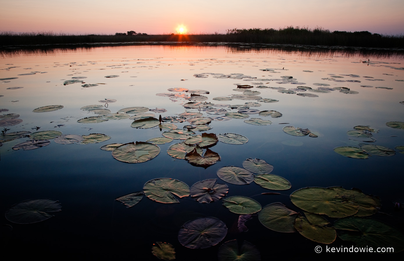sunset over lily pond, Okavango Delta